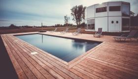 Grands espaces extèrieur avec une piscine chauffée et sécurisée ainsi qu'un SPA nordique et des trants
