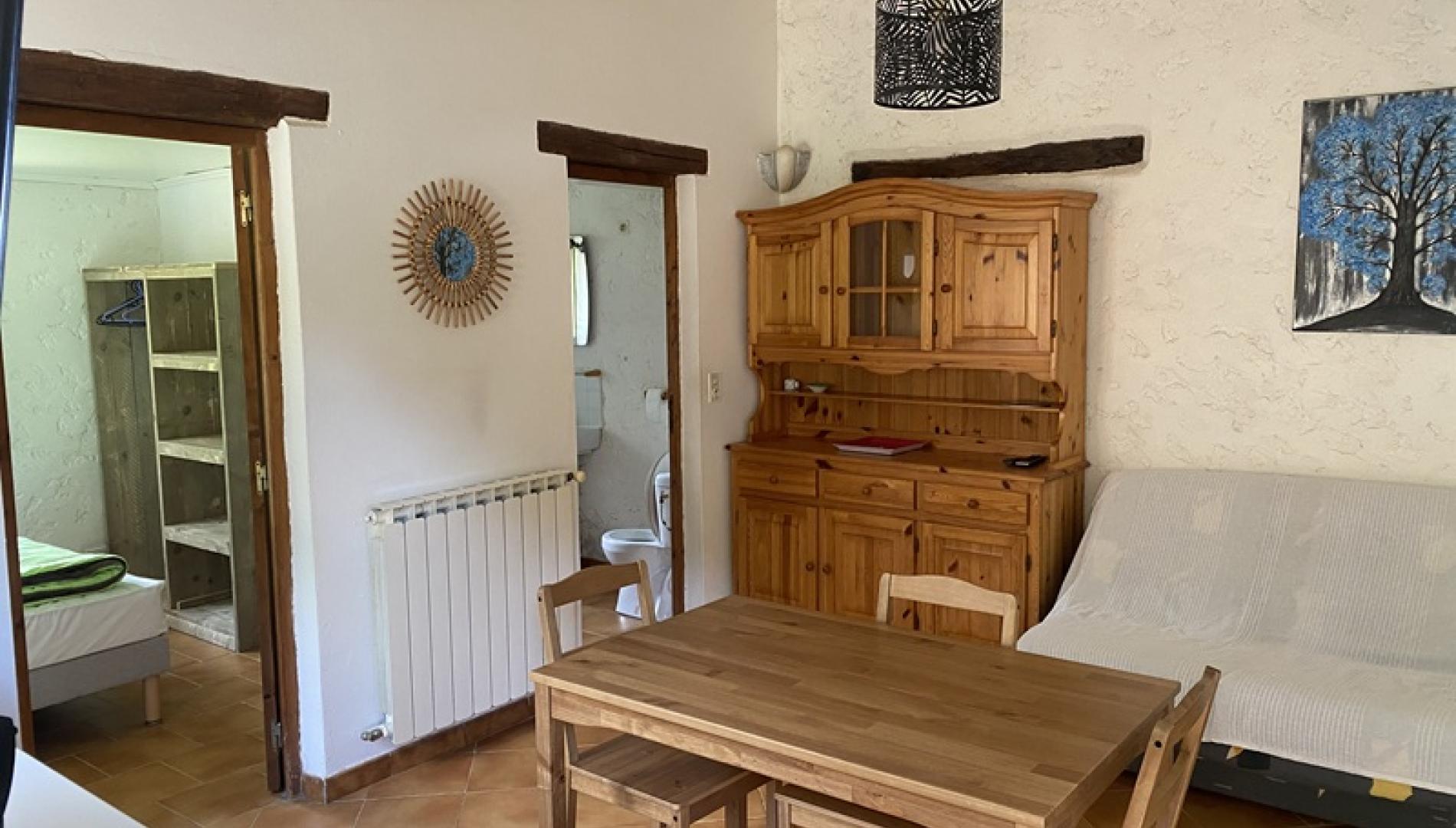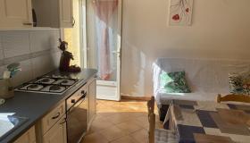 - un grand séjour avec cuisine toute équipée, un canapé, télévision