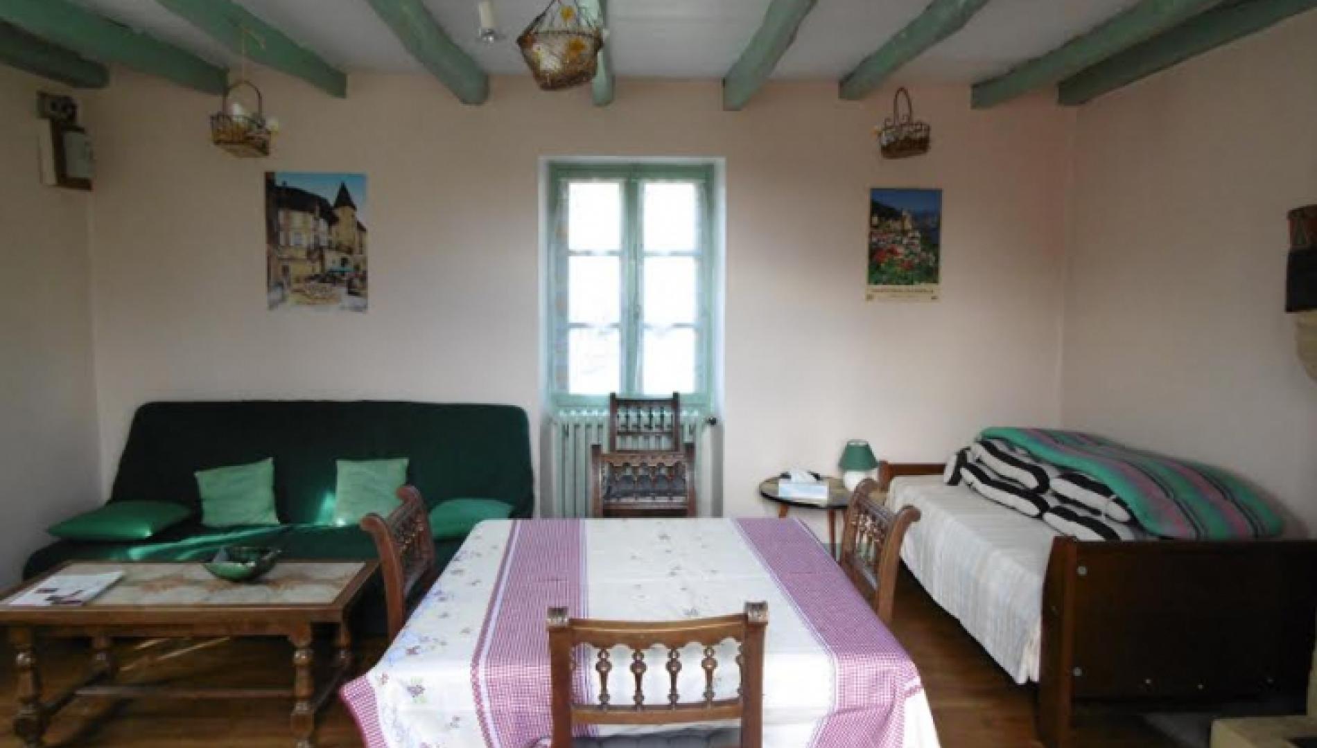 Dans la salle à manger il y a un lit de 90 et canapé lit (clic clac).