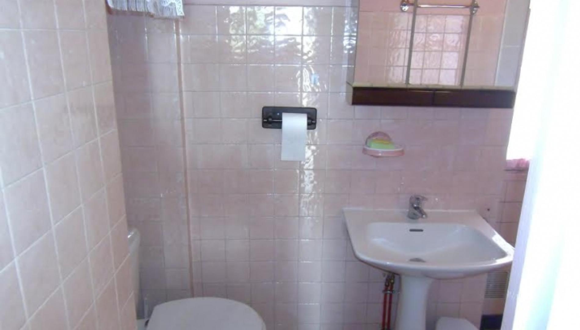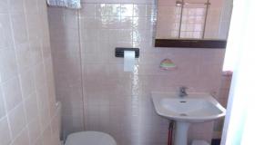 Dans la salle de bain un wc, un lavabo, une douche.