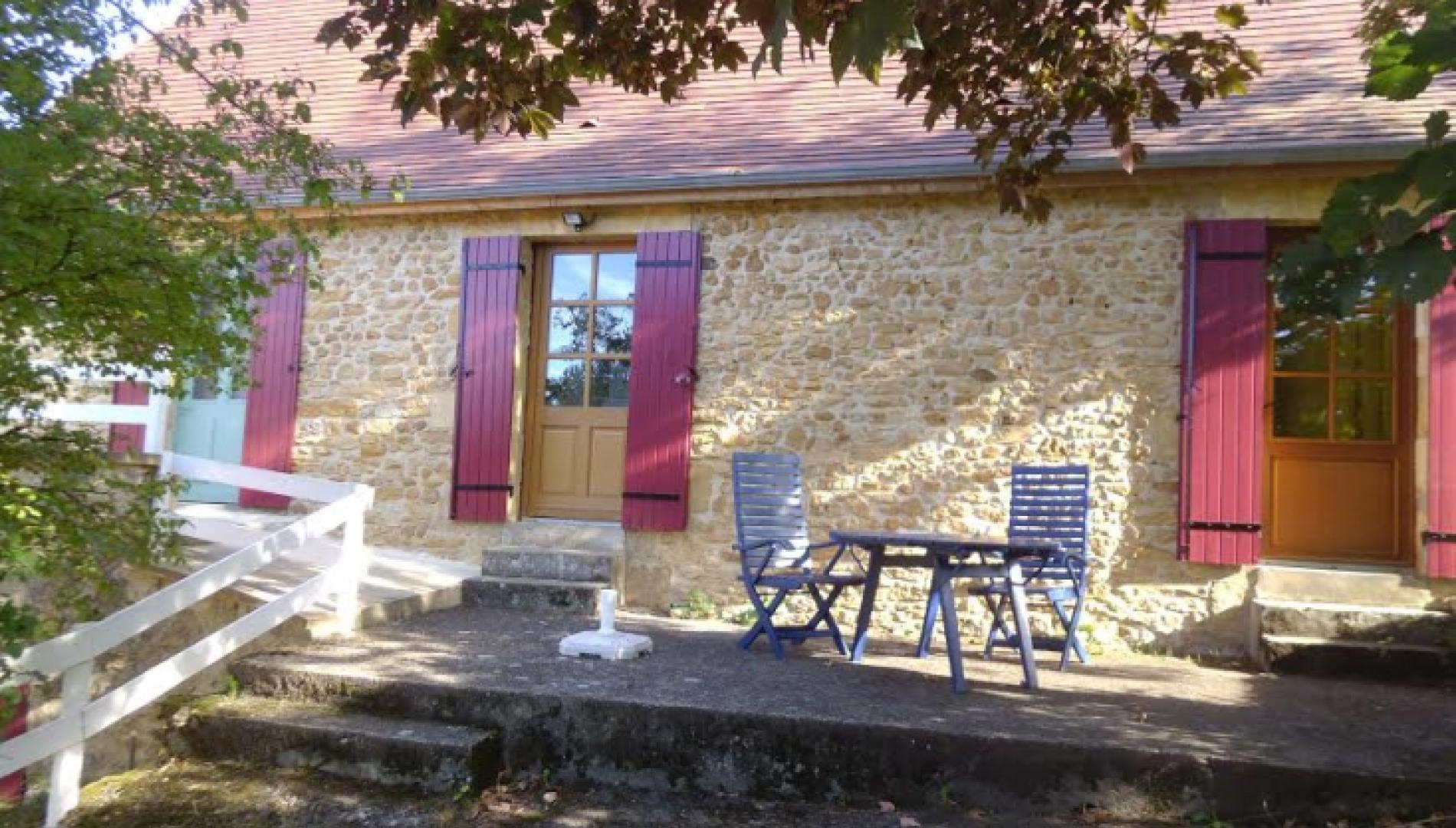 .petite maison périgourdine "à la ville à la campagne" à 2 mn de Sarlat en voiture,15 à 20 mn à pieds, dans un quartier calme avec une terrasse et un cadre agréable.