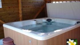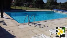 Chalet pour 4/6 personnes, avec piscine chauffée + jacuzzi, classement préfectoral, terrasse couverte. Coin-cuisine, séjour, 2 chambres (2 lits 140, 1 lit superposé), +lit bébé,plancha, salon de jardin. TV, micro-ondes, lave-linge. Tennis gratuit à 1 km, jeux d'enfants, ping-pong, volley-ball, pétanque, randonnées pédestres et VTT.