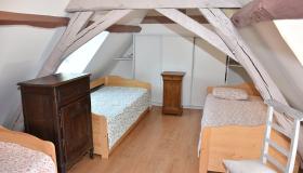 Depuis la pièce de vie, un escalier mène au premier étage où se trouvent une seconde chambre double avec sa propre salle d’eau et une chambre avec trois lits simples, idéale pour les enfants.