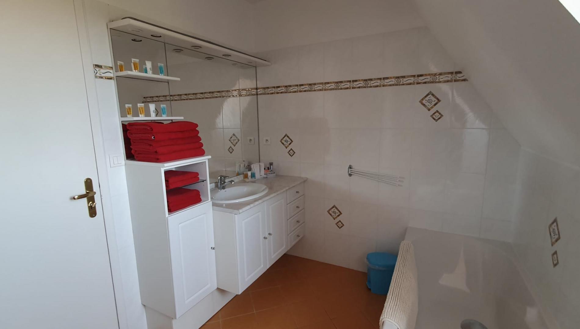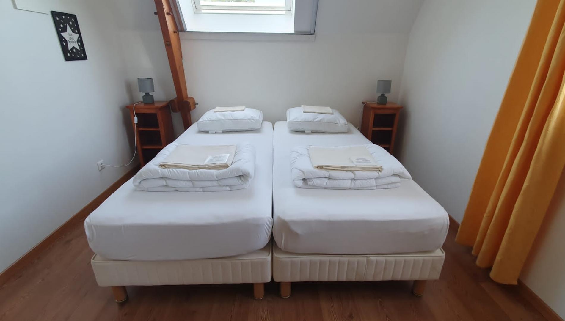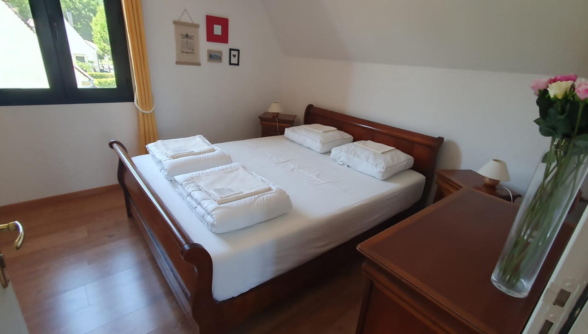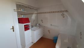Au premier étage, vous trouverez deux chambres, dont l’une est équipée d’un lit double. La deuxième chambre offre 2 ou 3 lits supplémentaires à volonté. Il y a beaucoup d’espace pour les placards, un deuxième WC et une grande salle de bain luxueuse avec baignoire, douche et lavabo.