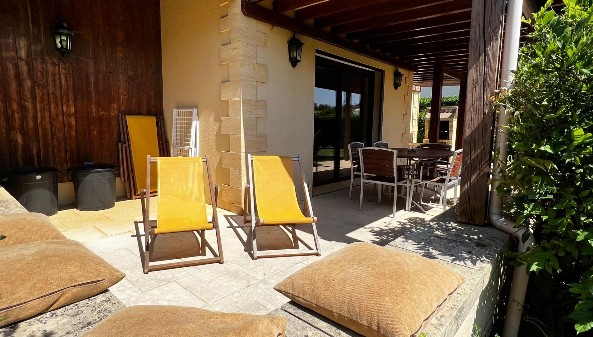 La salle de séjour très spacieuse avec cuisine ouverte et entièrement équipée offre un accès par les portes coulissantes à une pergola ombragée et à un jardin ensoleillé attenant, entouré d’une verdure de taille humaine. Le salon donne également accès à une très grande buanderie équipée de tous les appareils électroménagers souhaités, notamment un lave-linge , un sèche-linge, un four et de nombreux espaces de rangement.