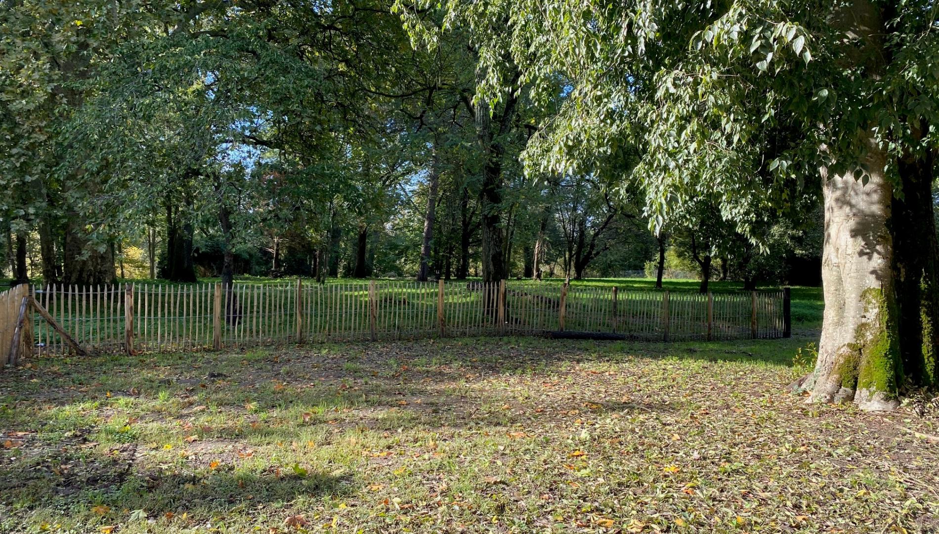 Le terrain est clos et arboré avec un accès en bord de Dordogne.