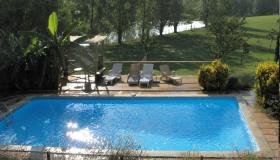 terrain pour jeux de boules.Parking ombragé. Pool housse avec plancha et barbecue.Etang pour la pêche, chemins de promenade. Propriété 22ha.
