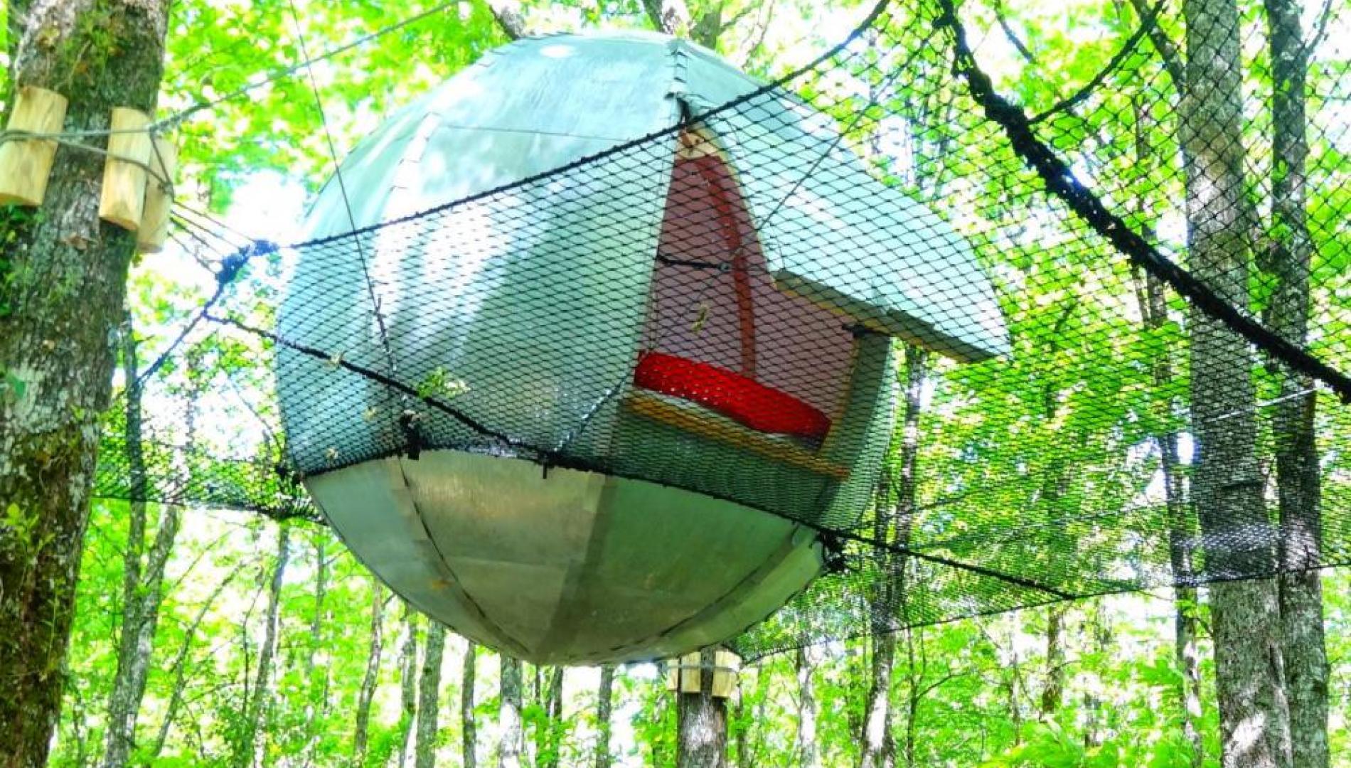 Nouveau concept insolite pour un séjour en amoureux, les LOV'NID® sont une invitation à redécouvrir les nuits à la belle étoile dans un grand nid douillet suspendu dans les arbres.