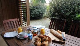 Les logements comprennent aussi une kitchenette équipée d'un réfrigérateur, d'un lave-vaisselle et d'une machine à café. L'établissement possède un bar et un snack-bar. Des paniers-repas sont préparés sur demande et sur commande, nous vous livrons pain et viennoiserie sur votre terrasse le matin.