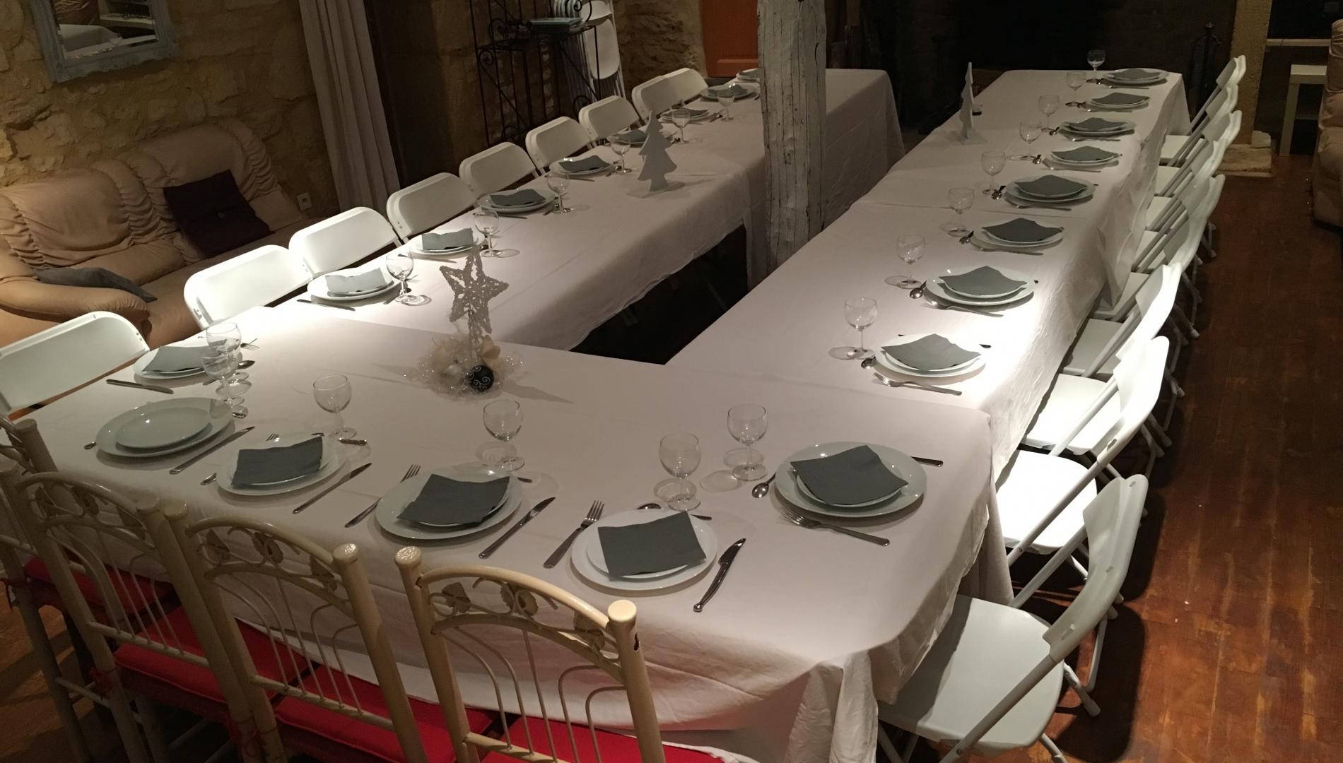 Nous vous proposons une salle de réception champêtre dans notre ancienne grange à tabac, ouverte à la belle saison d'Avril à Octobre, pour vos repas de groupe, fête de famille, anniversaire, mariage, séminaire, avec cuisine à proximité.